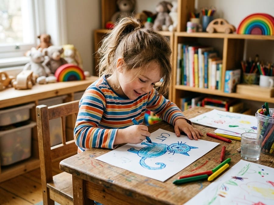 Disegnare un gatto, ad esempio, aiuta i bambini a osservare forme, proporzioni e dettagli. Le orecchie, i baffi, la coda e gli occhi diventano elementi da rappresentare e interpretare.
